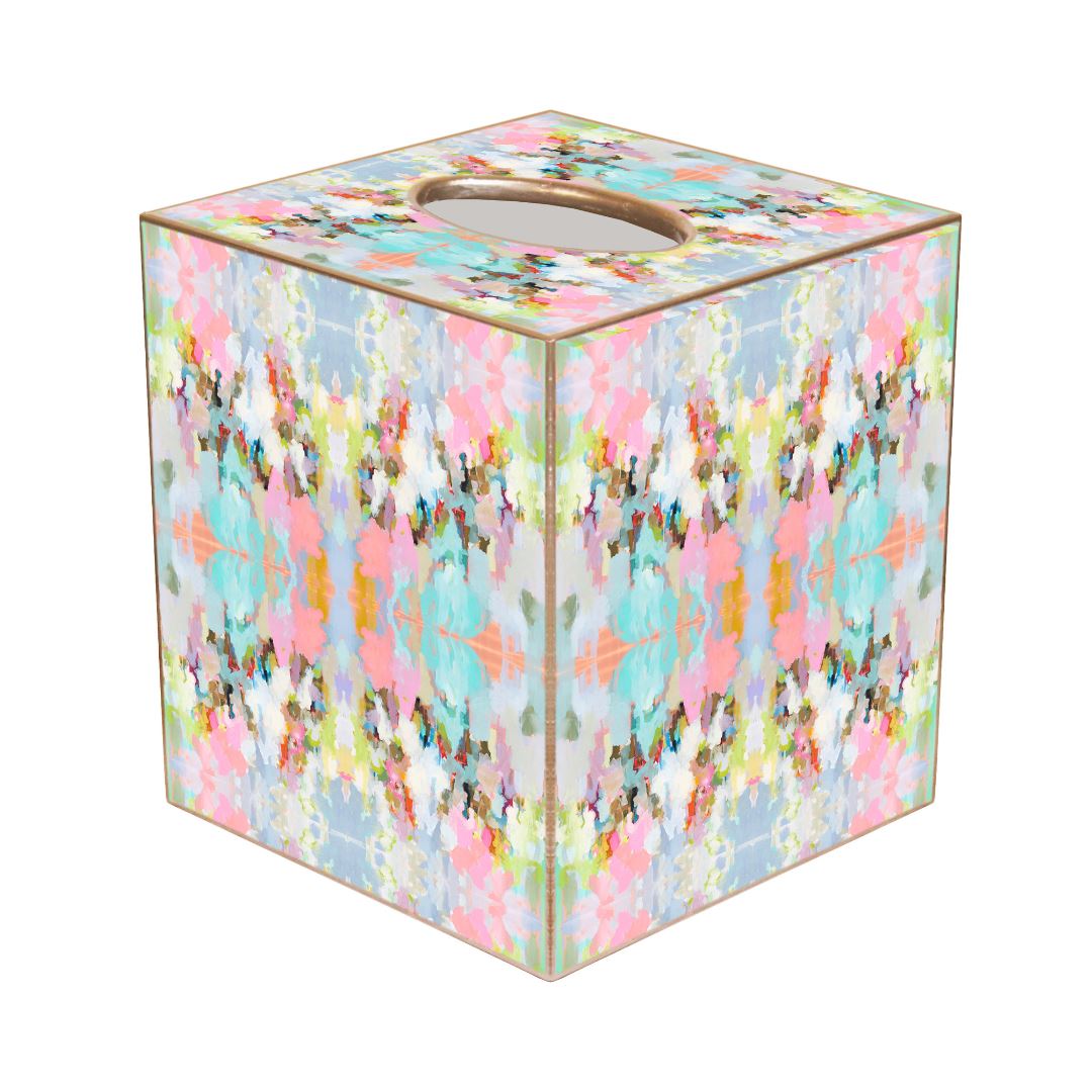 Add a colorful touch to your space with the Laura Park Brooks Avenue Tissue Box Cover in vibrant pink, blue, and a mix of cheerful hues. Designed to turn an everyday essential into a stylish statement, this decoupaged cover brings bold pattern and functional charm to your desk, vanity, or bathroom. Pair it with our matching wastebasket and picture frames for a beautifully coordinated look!