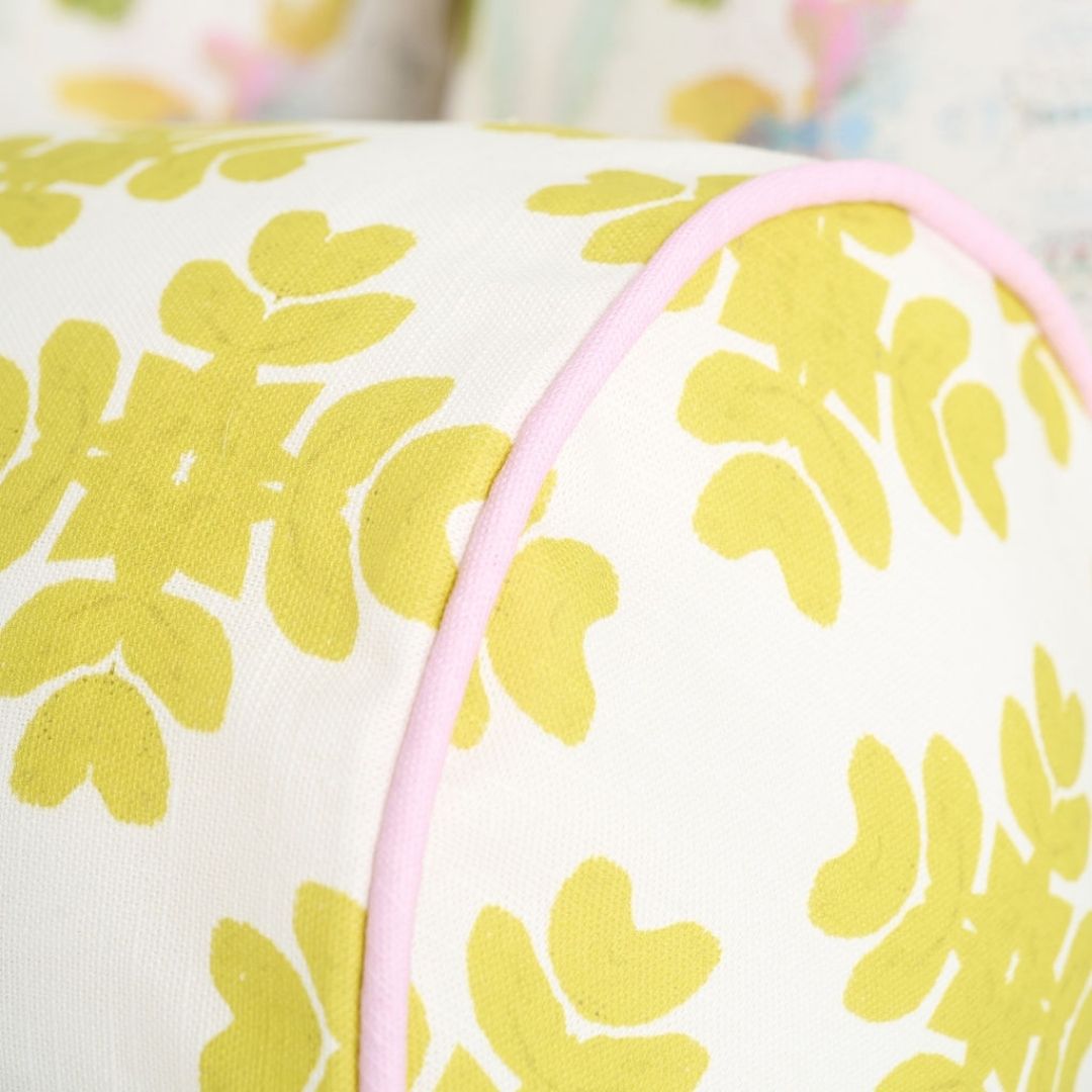 Brushstrokes Citrine with Light Pink Piping Round Bolster Pillow