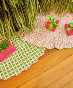 Add a festive pop of color to your holiday décor with our quilted Brushstrokes Tree Skirt. Designed in Laura Park’s leafy green print with a charming scalloped edge, this skirt features a 6center hole and tie closures for easy styling. Both playful and practical, it’s the perfect finishing touch under your tree.