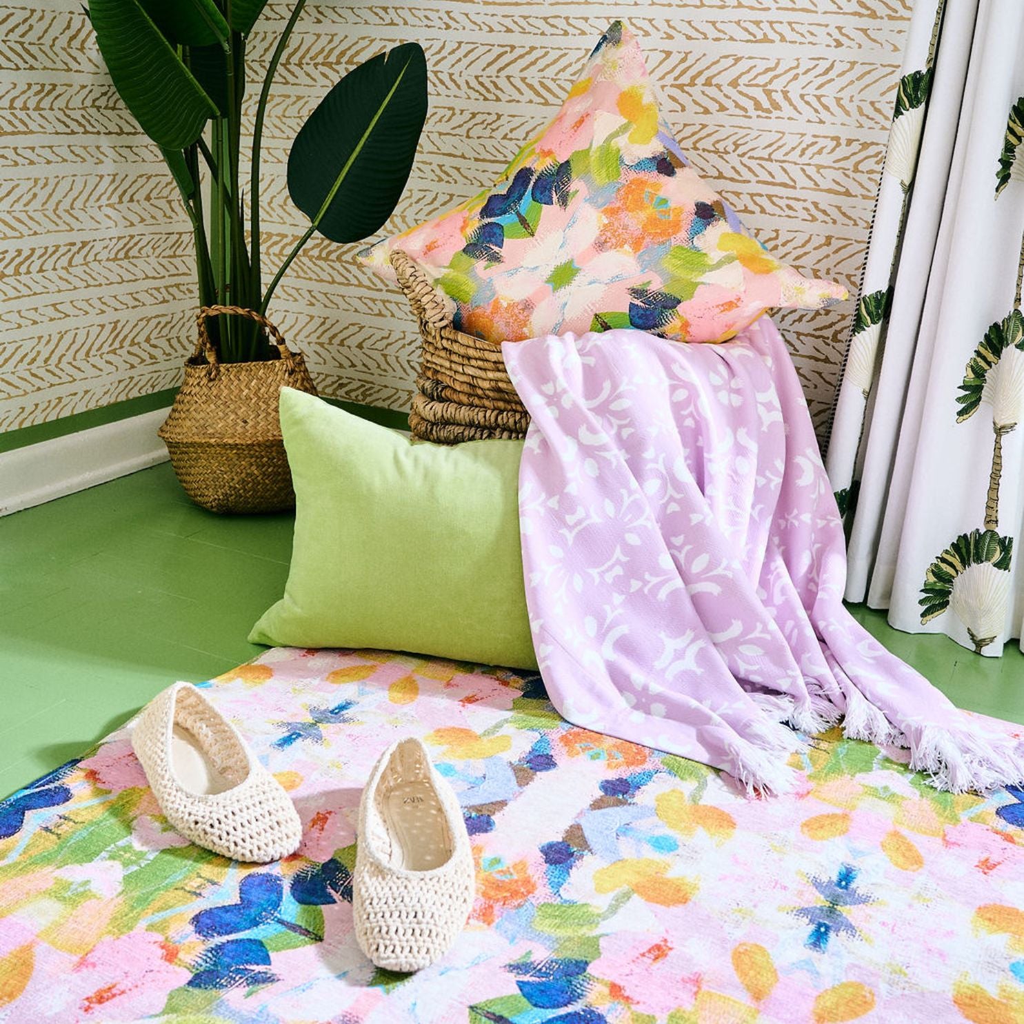 Step into joy with the Color Me Happy floor mat, showcasing Laura Park’s lively print of sunlit yellows, vibrant oranges, soft pinks, and moody blues. Available in three sizes, this mat brings a pop of color and warmth to any entryway, kitchen, bedroom or bathroom.