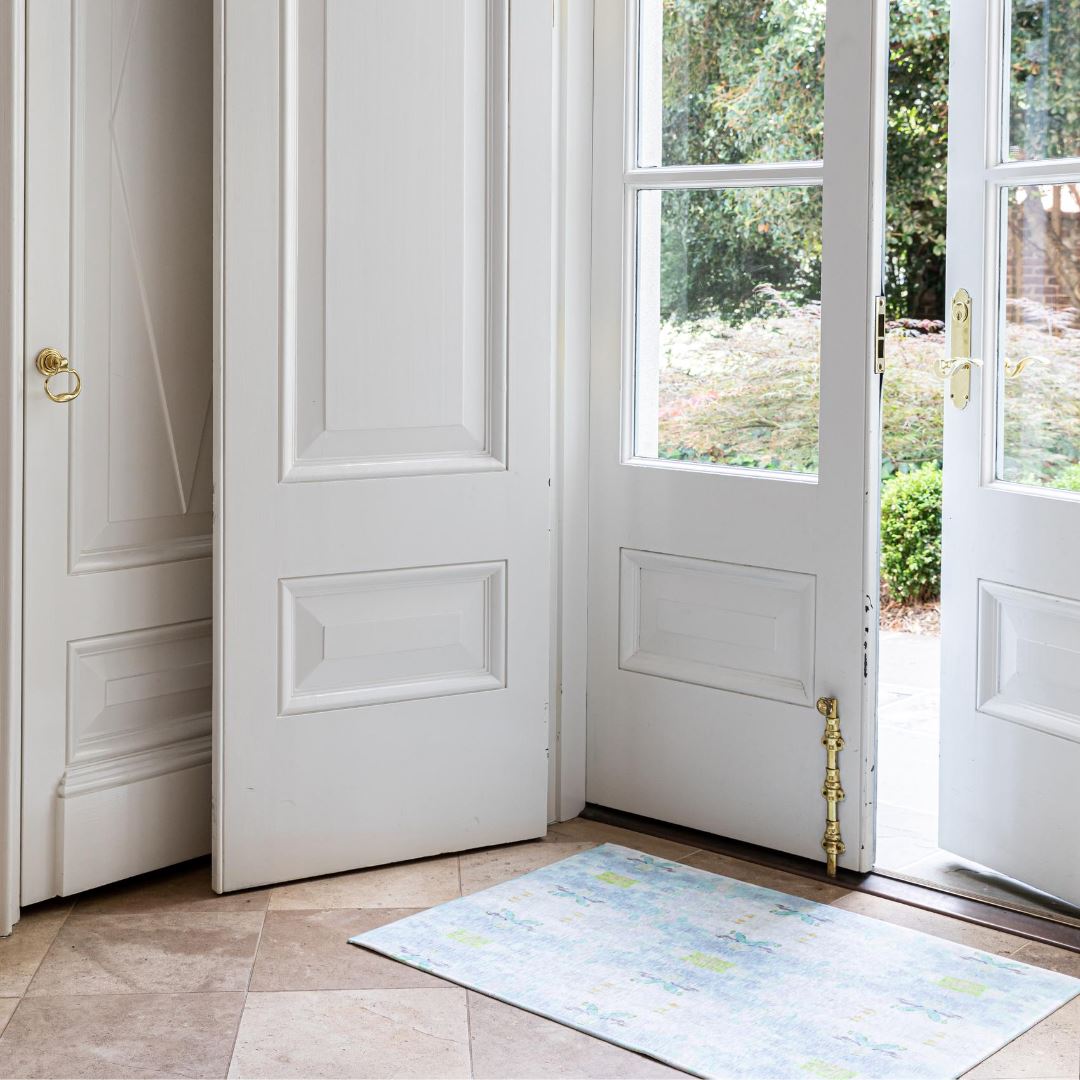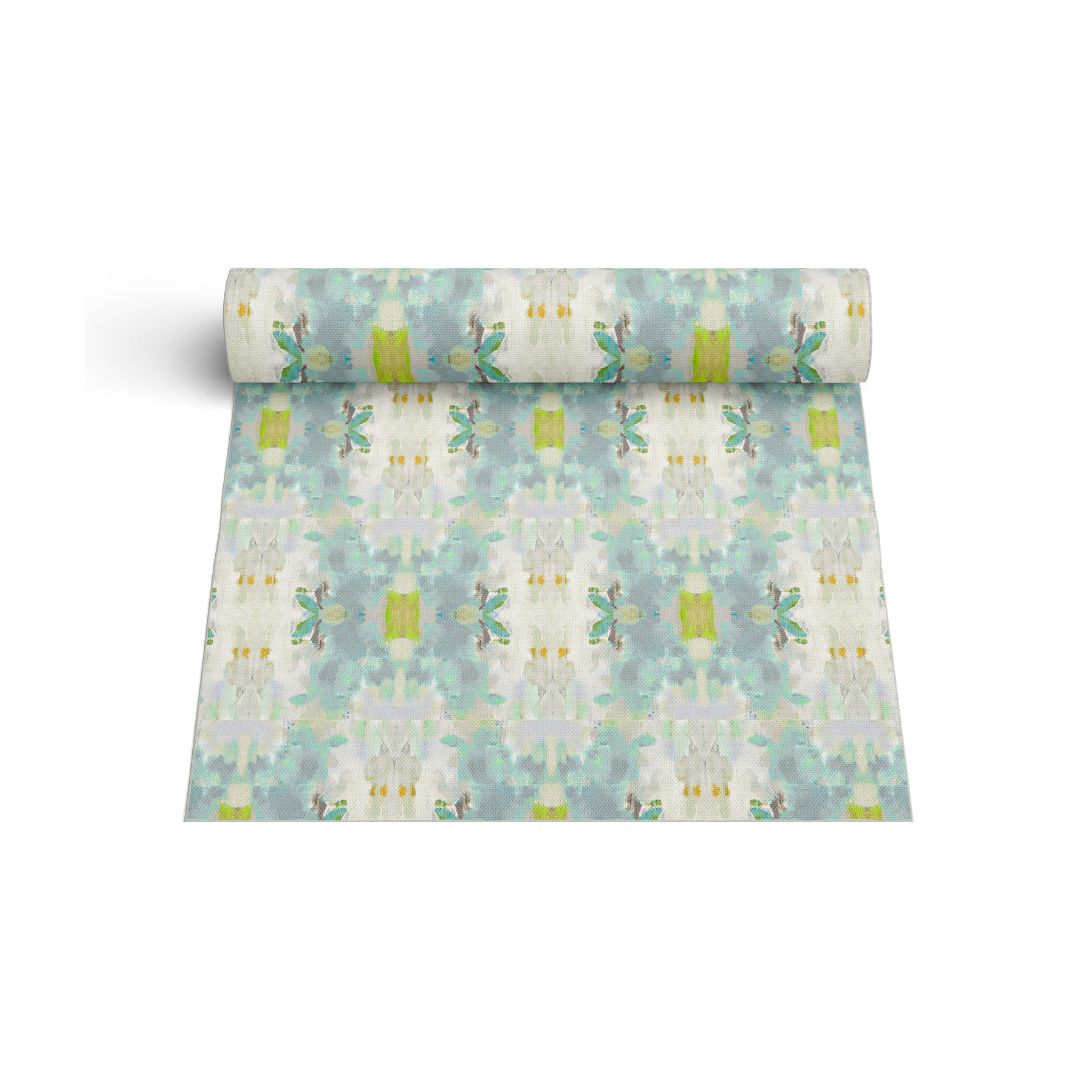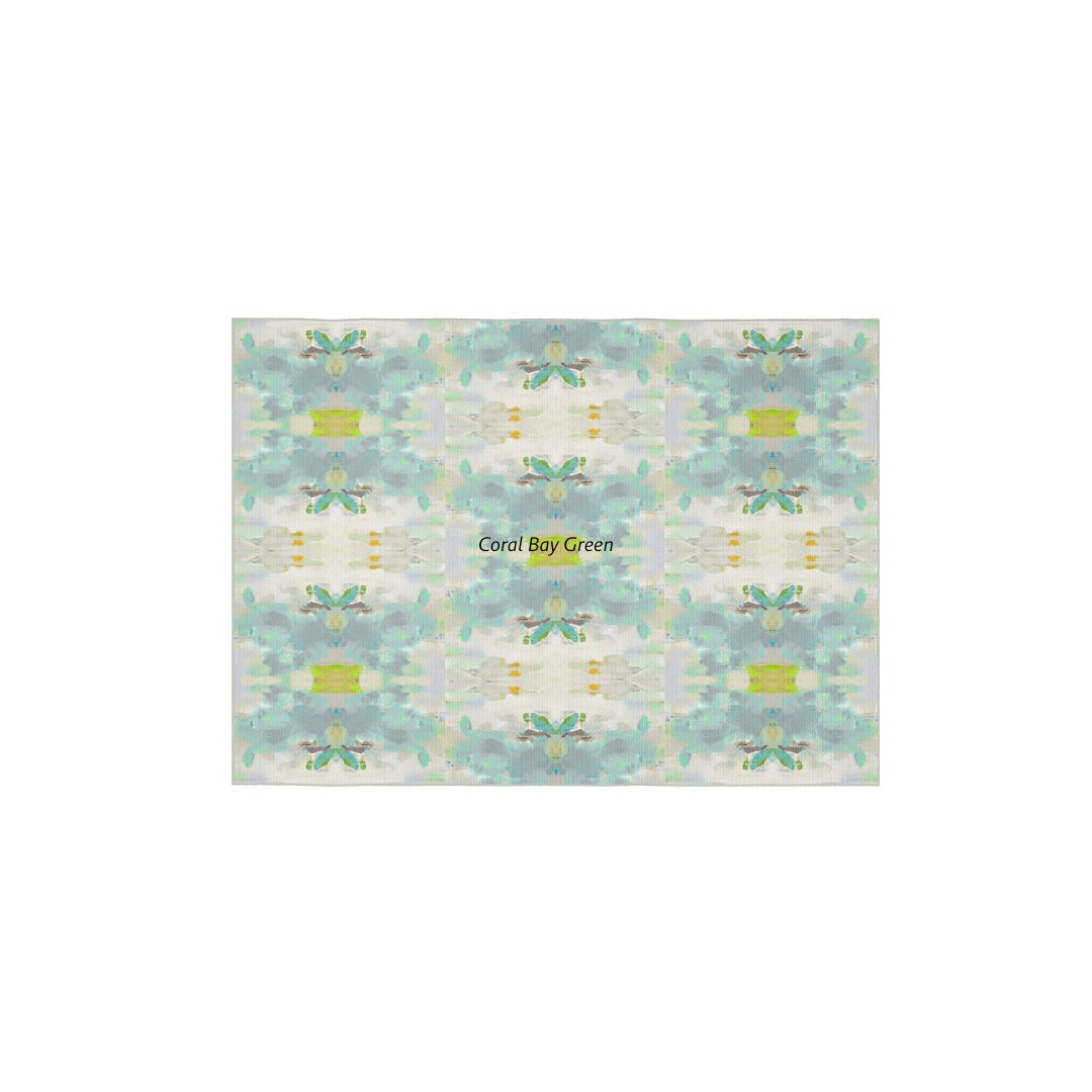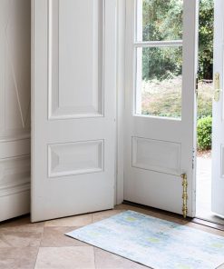 The Coral Bay Green floor mat features Laura Park’s signature use of color, combining soft blues and green accents. Durable and artful, it’s designed for high-traffic spaces like kitchens, baths, and entryways.