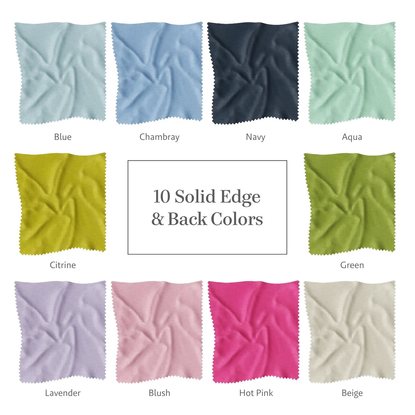 | Size | Solid Blue (Linen Cotton), Solid Blue (Faux Hide), Solid Chambray (Linen Cotton), Solid Chambray (Faux Hide), Solid Navy (Linen Cotton), Solid Navy (Faux Hide), Solid Aqua (Linen Cotton), Solid Aqua (Faux Hide), Solid Citrine (Linen Cotton), Solid Citrine (Faux Hide), Solid Green (Linen Cotton), Solid Green (Faux Hide), Solid Lavender (Linen Cotton), Solid Lavender (Faux Hide), Solid Blush (Linen Cotton), Solid Blush (Faux Hide), Solid Hot Pink (Linen Cotton), Solid Hot Pink (Faux Hide), Solid Beige (Linen Cotton), Solid Beige (Faux Hide), Swatch Ring (10 Solid Colors, 2 Fabrics) |