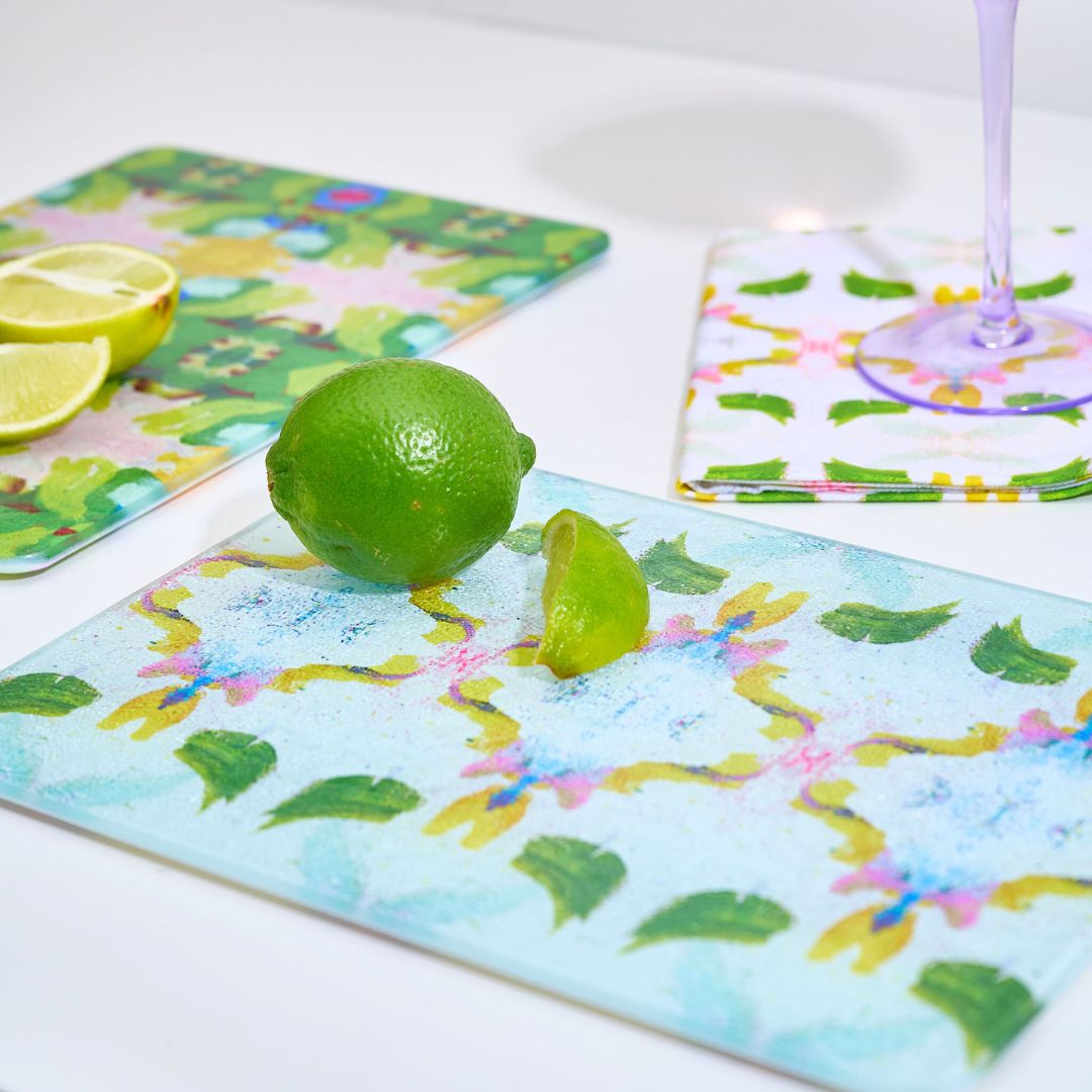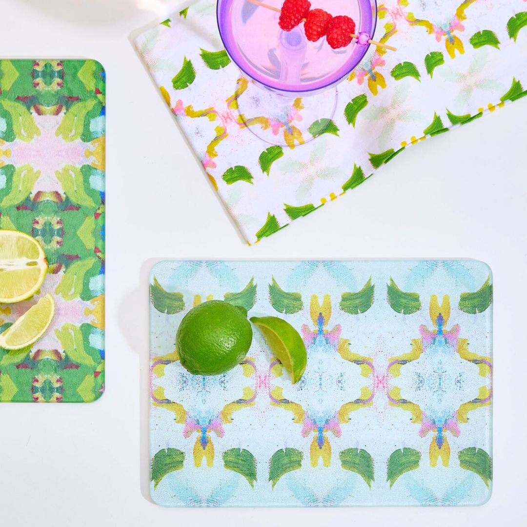Spice up your kitchen with these colorful cutting boards. Featuring a durable, cut-proof tempered glass fitted with rubber feet to prevent sliding.