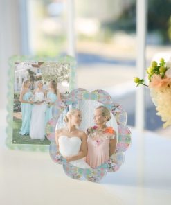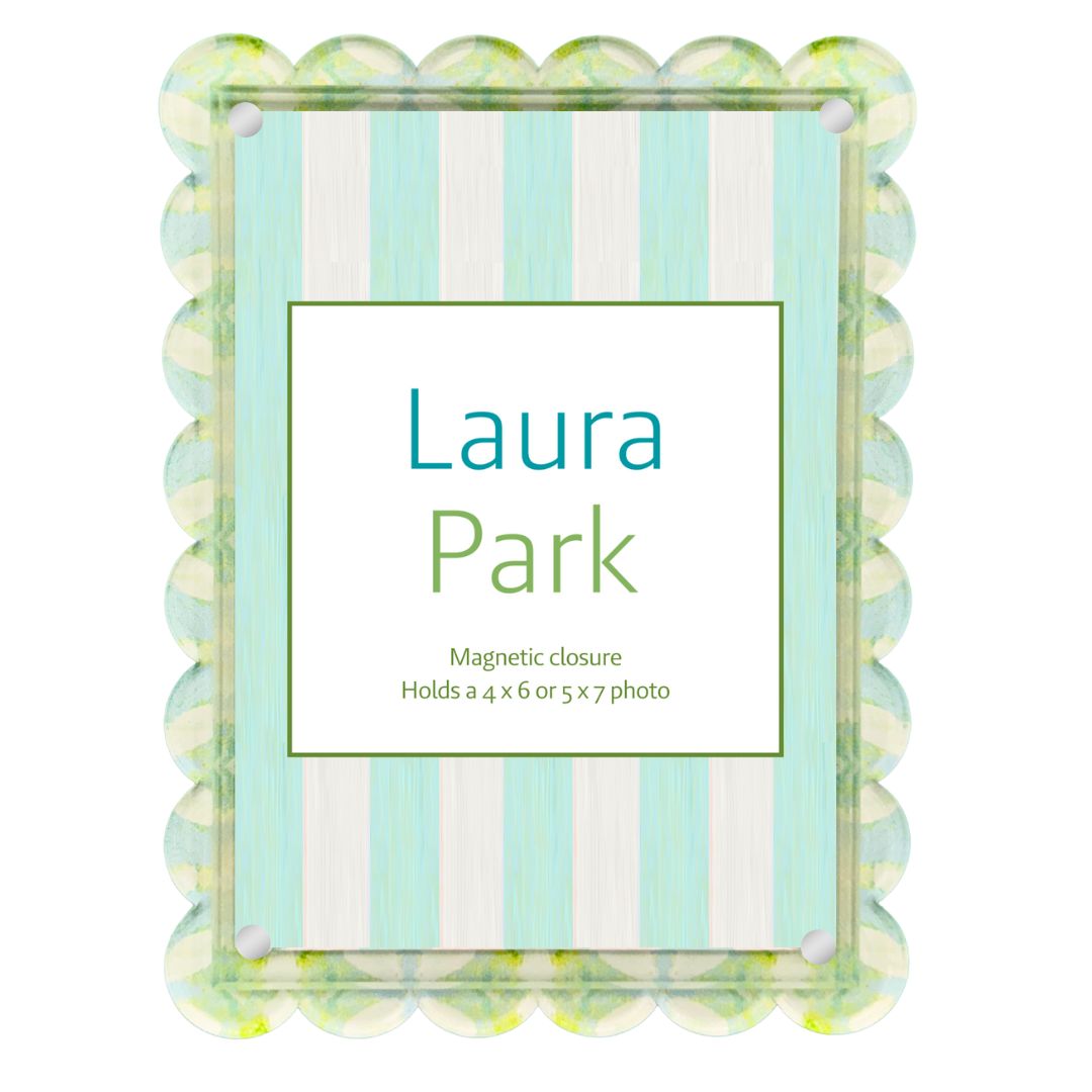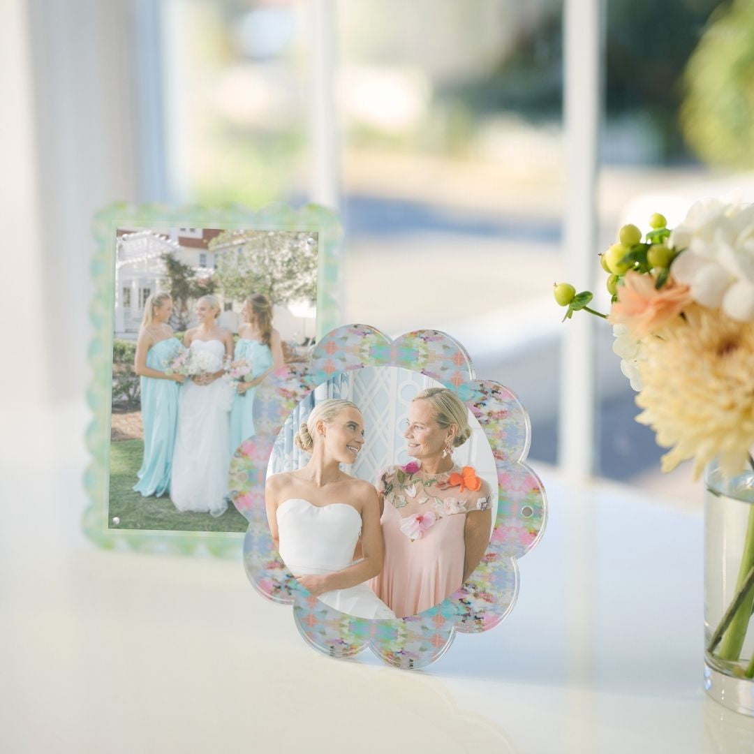 Highlight favorite photos with a stylish acrylic picture frame. Featuring our Elephant Falls print and a chic scalloped edge, this magnetic acrylic frame displays photos and keepsakes while adding a cheerful pop of color to desks, shelves, and bedside tables.