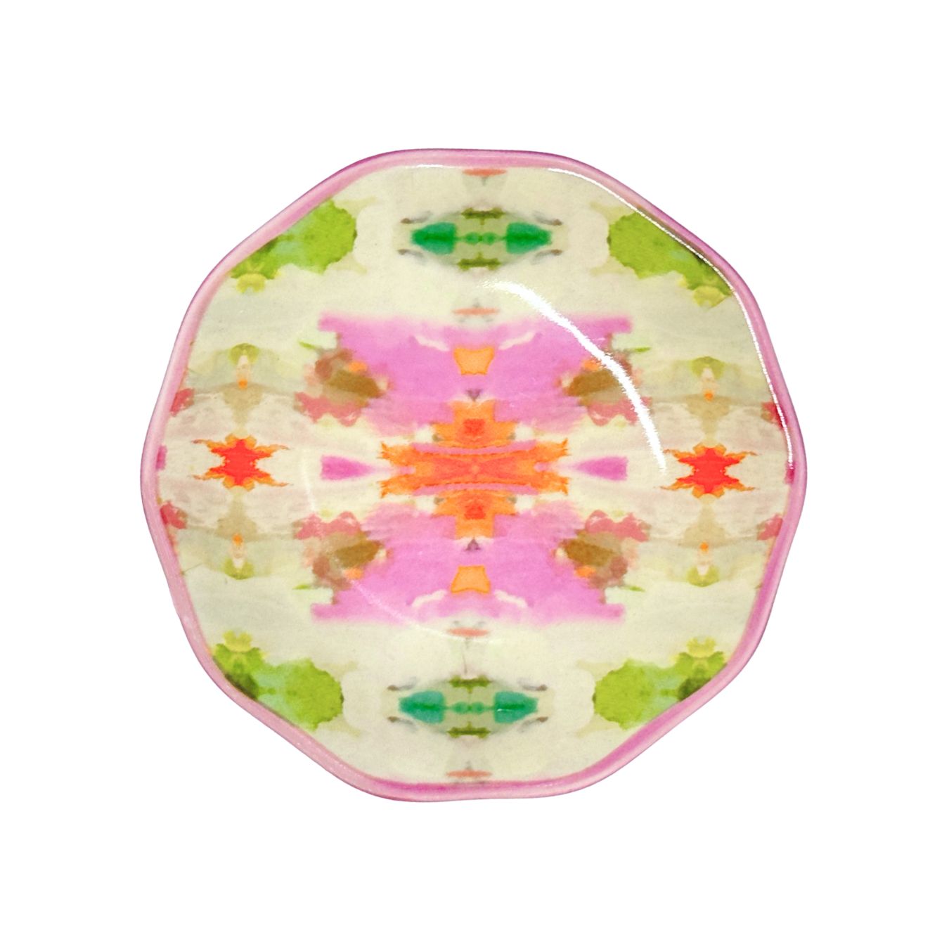 Add a pop of color to your vanity with our Giverny Ceramic Ring Dish. This round catchall features Laura Park’s signature painterly pattern in playful pinks, greens, and oranges. Made of stoneware and perfect for holding rings, earrings, or tiny treasures.