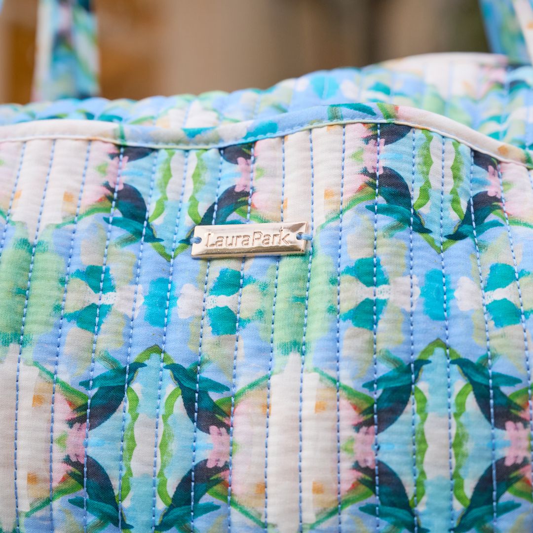 Designed with travel in mind, this updated quilted carry-on–ready bag features our Island House print and a softly structured silhouette. Finished with a built-in trolley sleeve that slides easily over your suitcase handle, it makes airport days and weekend getaways feel effortless and colorful.