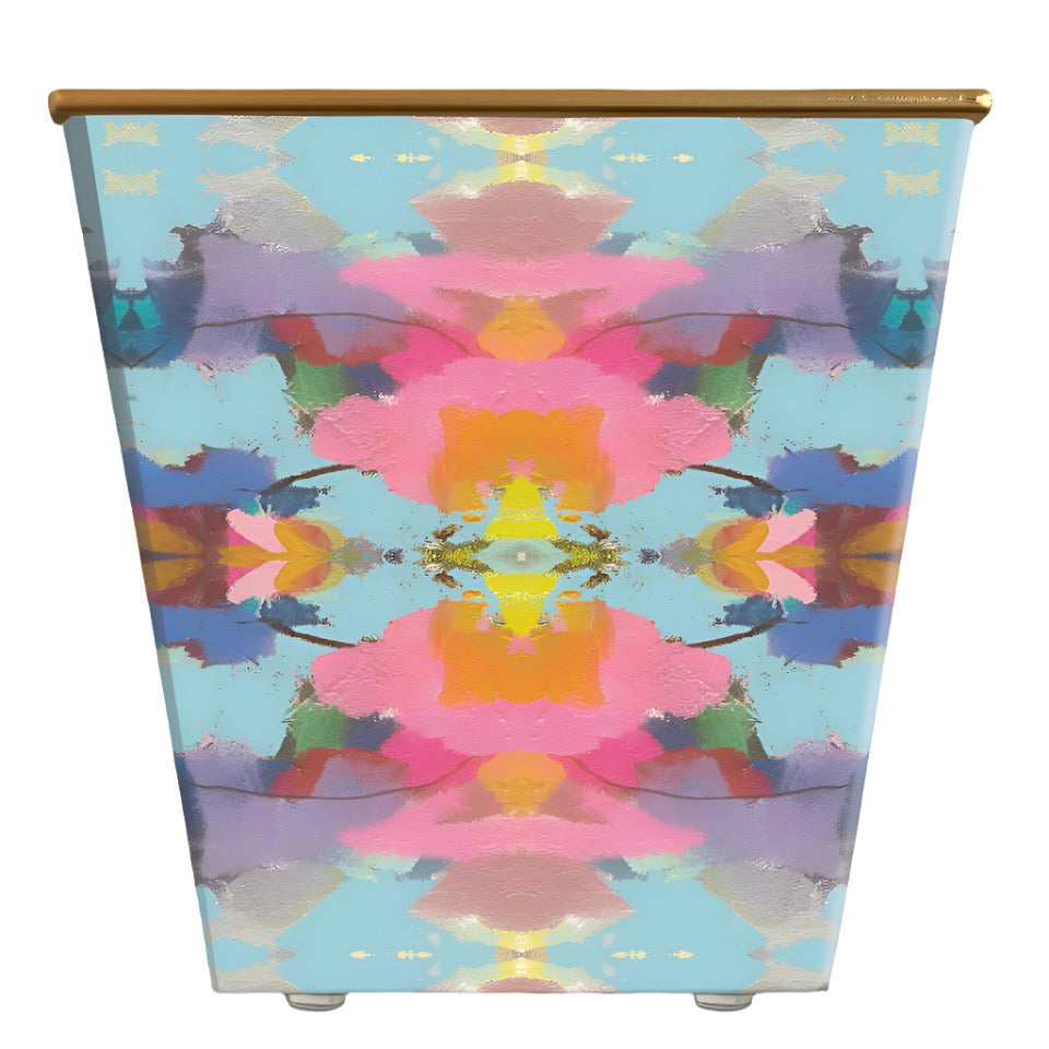 Handcrafted of composite material, wrapped in decorative paper, and finished with a burnished gold rim — four protective pads support its base. Proudly made in the USA!