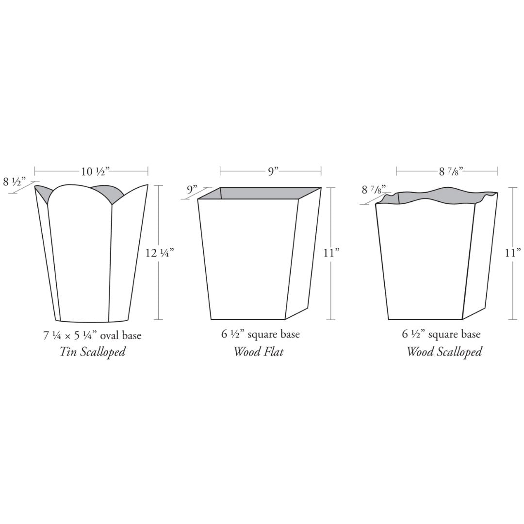 | Materials | Wood Waste Basket, Wood Scalloped Waste Basket |