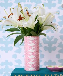 Brighten your space with our Palm Rose Vase, featuring Laura Park’s signature abstract print in cheerful shades of pink. This ceramic cylinder vase is finished with a delicate gold rim, perfect for fresh blooms, stems, or as a colorful accent all on its own.