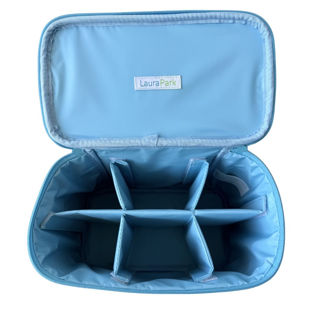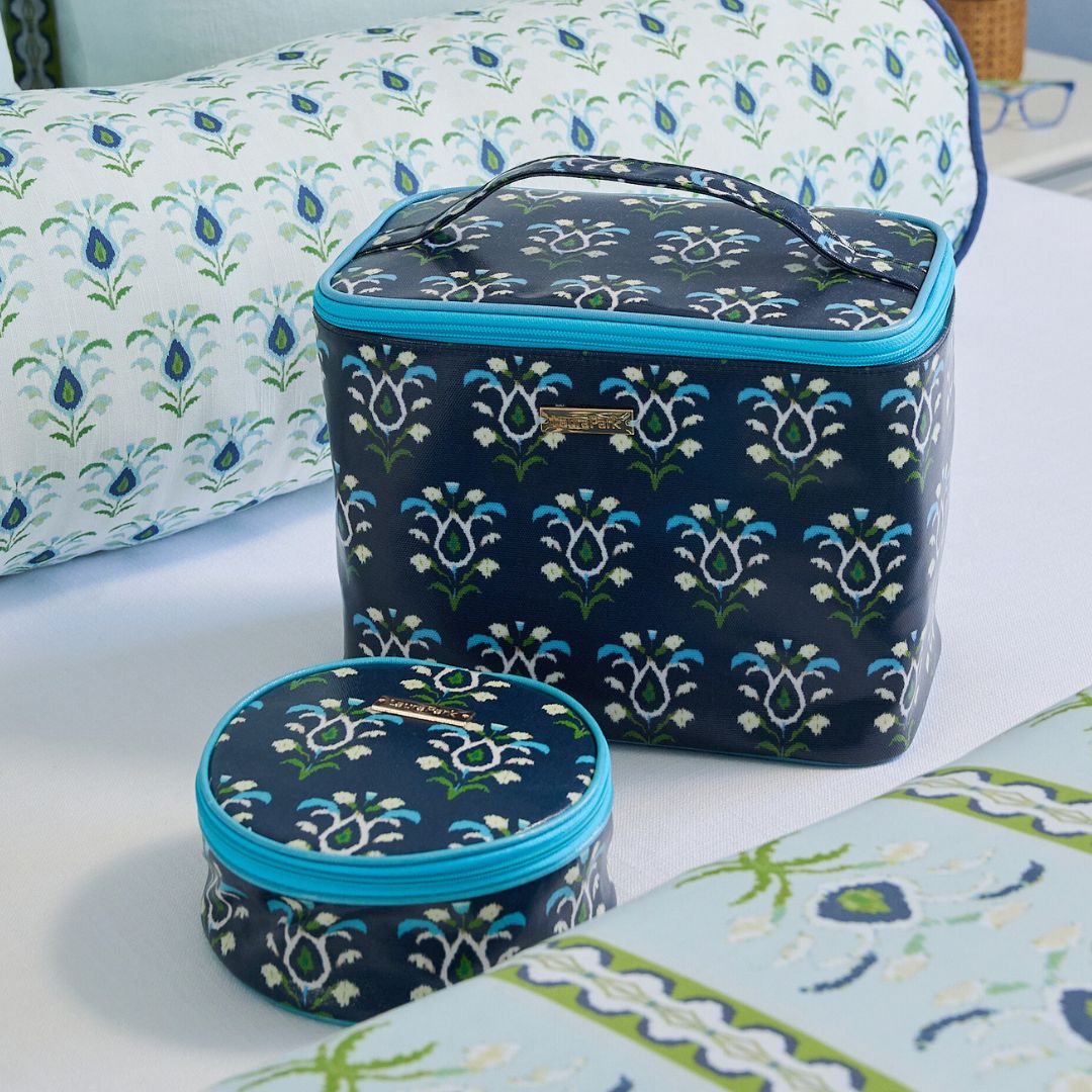 Stay organized in style with this structured cosmetic train case featuring our Rosemary Indigo print. Made in easy-to-clean coated fabric with a wipeable lining and removable compartments, it keeps makeup, skincare, and travel essentials neatly organized and easy to find.
