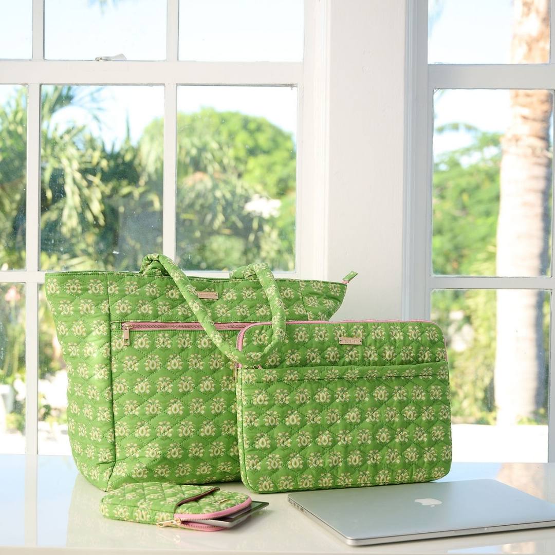 A soft, charming laptop case in our Rosemary Meadow print, designed for effortless organization with a pop of color and pattern. Quilted with an exterior pocket to keep essentials within reach, it’s perfect for workdays, travel, and life on the go.