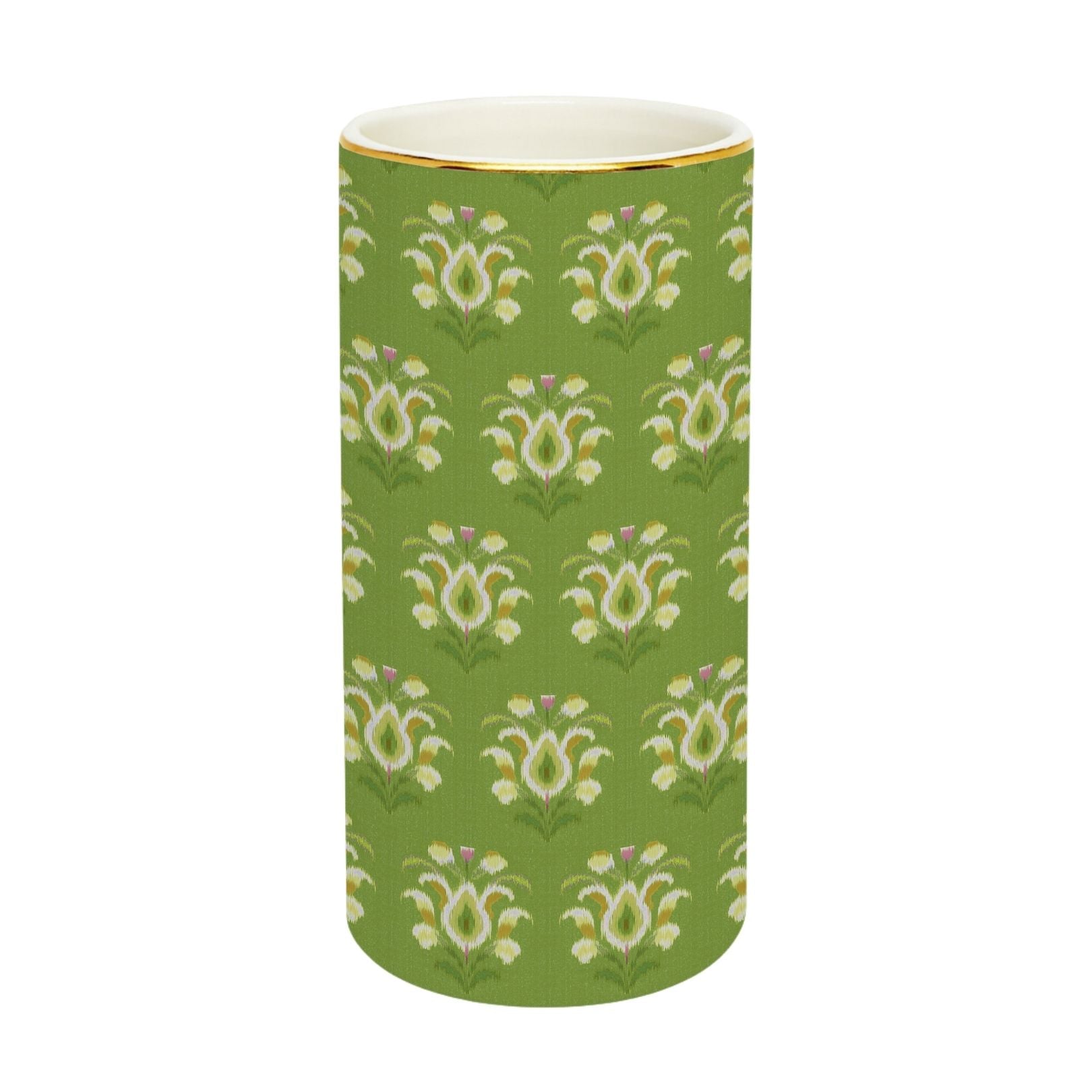 Brighten your space with our Rosemary Meadow Vase, featuring Laura Park’s signature print in cheerful green and pink. This ceramic cylinder vase is finished with a delicate gold rim, perfect for fresh blooms, stems, or as a colorful accent all on its own.