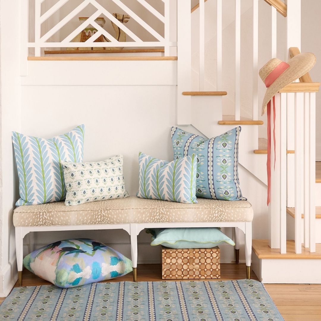 Step into joy with the Rosemary Stripe French Blue floor mat. Available in three sizes, this mat brings a pop of color and warmth to any entryway, kitchen, bedroom or bathroom.