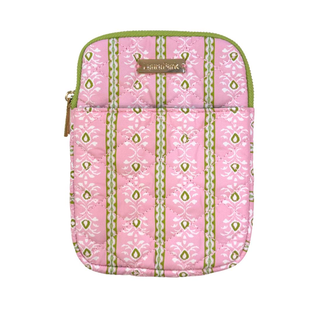 A cheerful quilted e-reader case in our Rosemary Stripe Pink print, featuring soft pink paired with fresh green stripes and a delicate floral print. Lightly padded with a slim profile and an exterior pocket for essentials, it’s a pretty way to protect your e-reader — including Kindle® devices — at home, on the go, or tucked inside your tote.