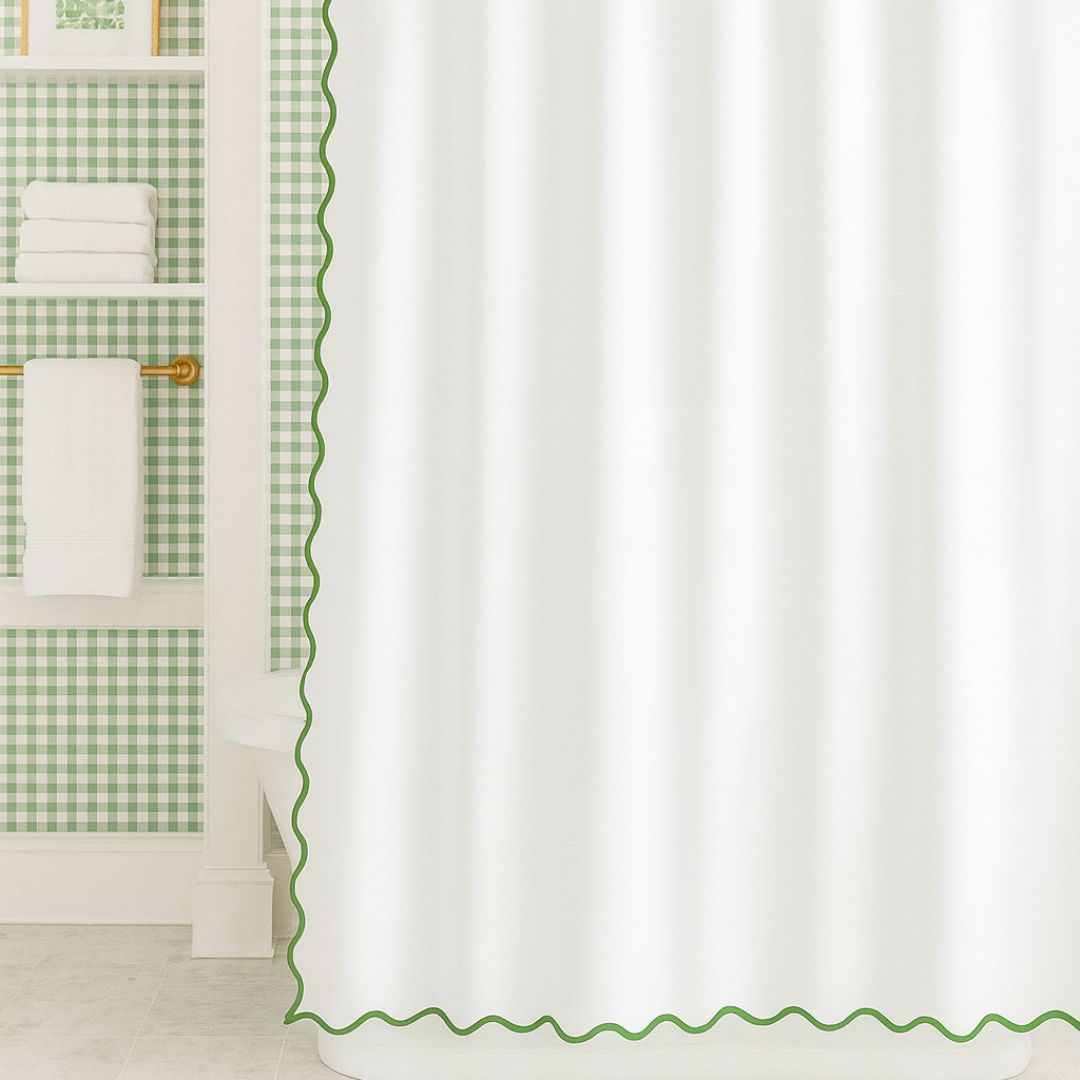 Be the first to review “Scalloped Shower Curtain, Green / White” Cancel reply