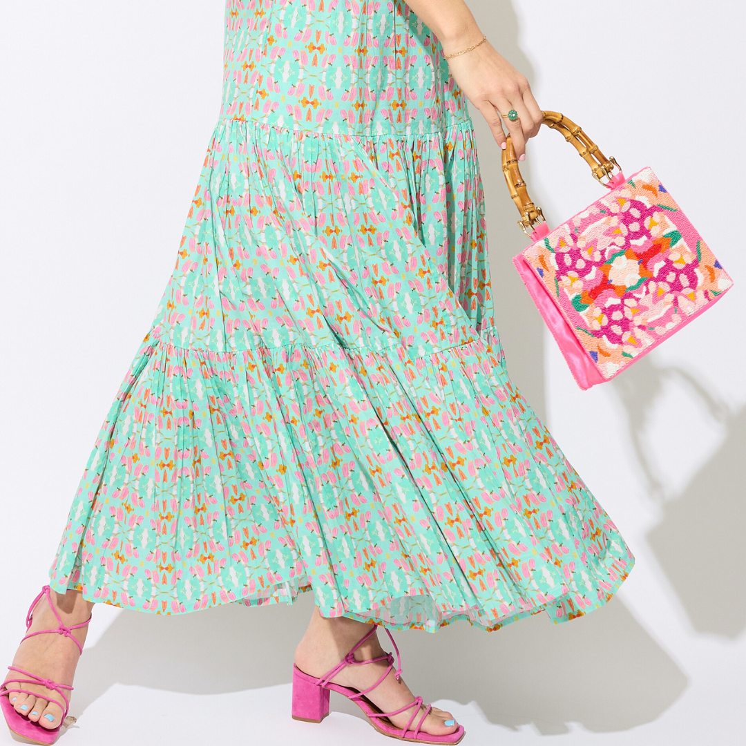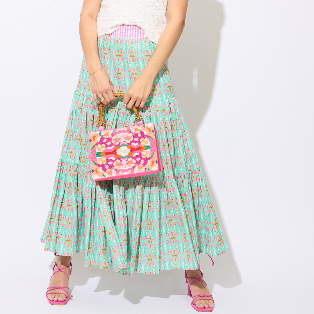 The Anniemakes the perfect companion for your day-to-day biz, a night around the town or the next soiree. Made by hand with preciosa seed beads and satin trim, this mini bag can carry small essentials like a phone, charger, lipstick and wallet and will adorn your fit with a colorful splash.