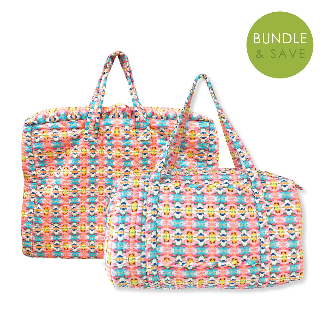 Your getaway essentials in one colorful set. Bundle the Weekender Duffle and Garment Bag and save 15%.